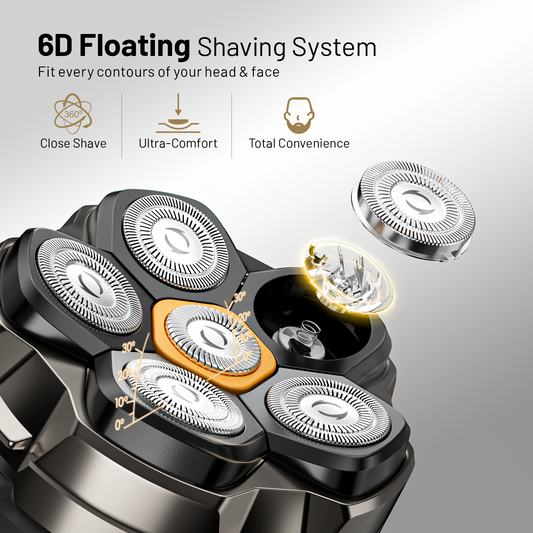 6 Blade Magnetic Replacement Shaving Head, Washable Shaver Blade Heads Replacement for Head Shaver Razor for Men